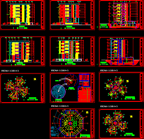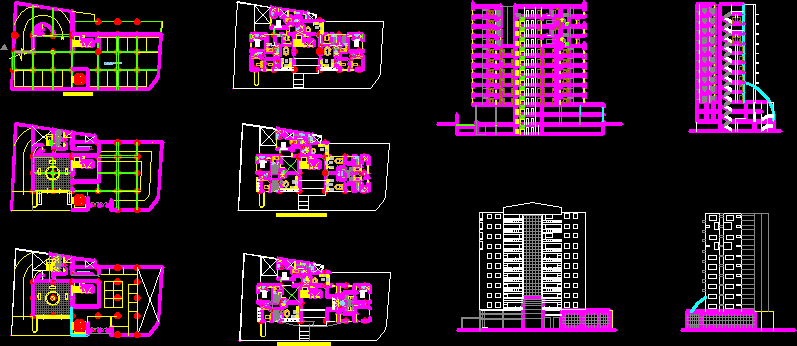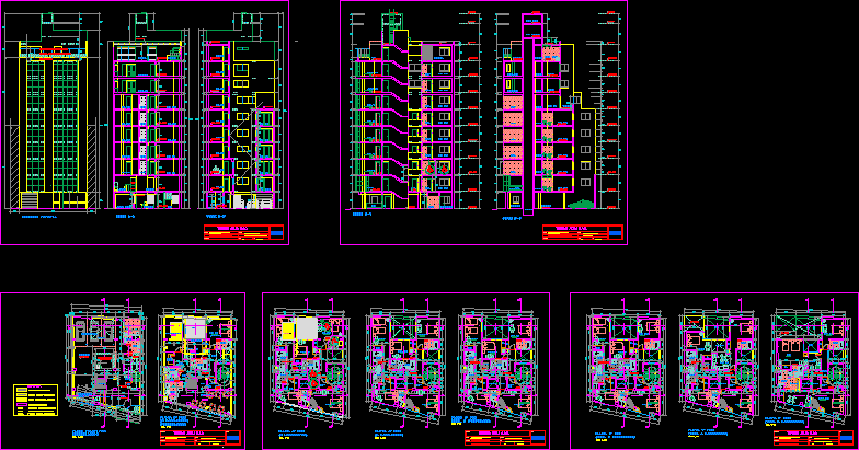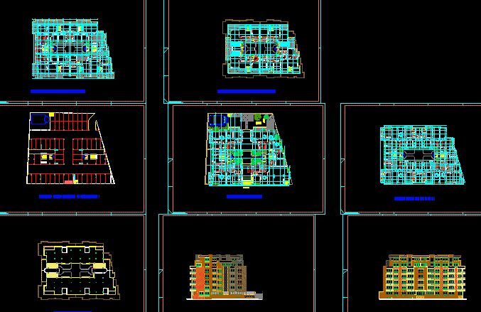 Multifamily bina Apartman - altında - Architectonic tertibatları - bölümler otopark ile zemin tesisi - yükselmeler ve Ayrıntılar |