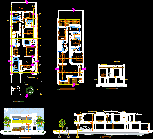 Bi familly konut İki bi aile konut - bitkiler - bölümleri - cephe düzeyleri |