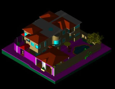 3D ev Havuzlu - ev yarım ilgi ile Auto Cad 3d proje |
