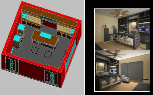 Office 2d ve 3d İki renders ve Auto Cad dosyasında 3d |