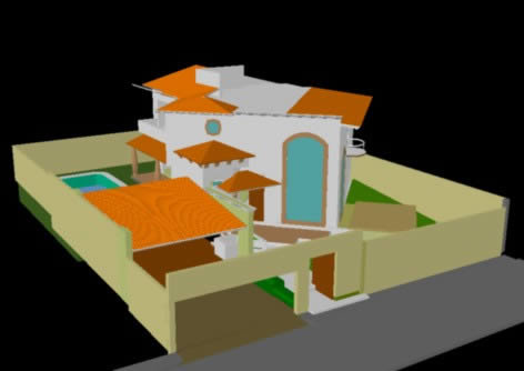 Konut 3D 3D - iki bitkiler - yüzme havuzunda konut |