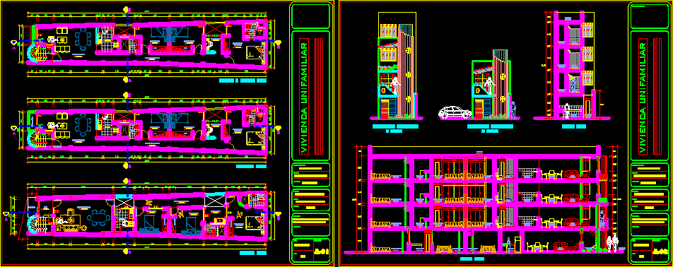 Aile Konutları Çok 6.00x17.00m - bitkiler - bölümleri - yükselmeler, Aile Konutları |