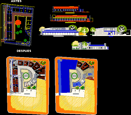 Okul güçlendirme Architectonic bitki önce ve sonra. Bölümler ve cepheler amplifikasyon ve okul koruma önce ve sonra |