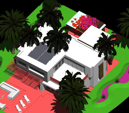 Güneş Evi 3d Bir aile konut güneş enerjisi kullanarak 3D |
