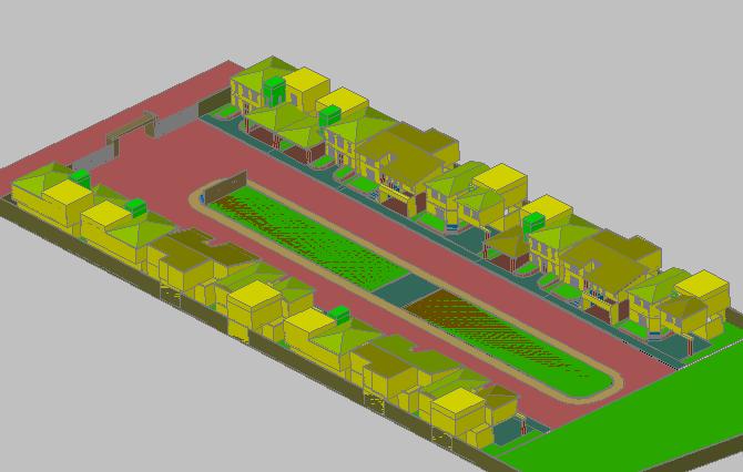 Gövdeleri gruplandırılmış 3d Residencial evleri 3 tip ile ayırma |