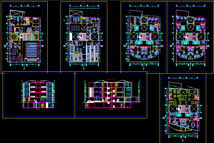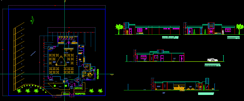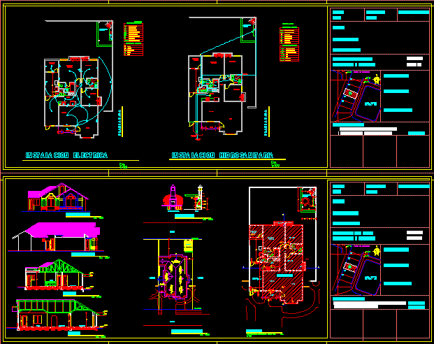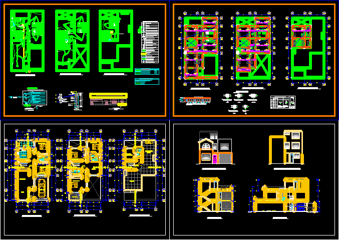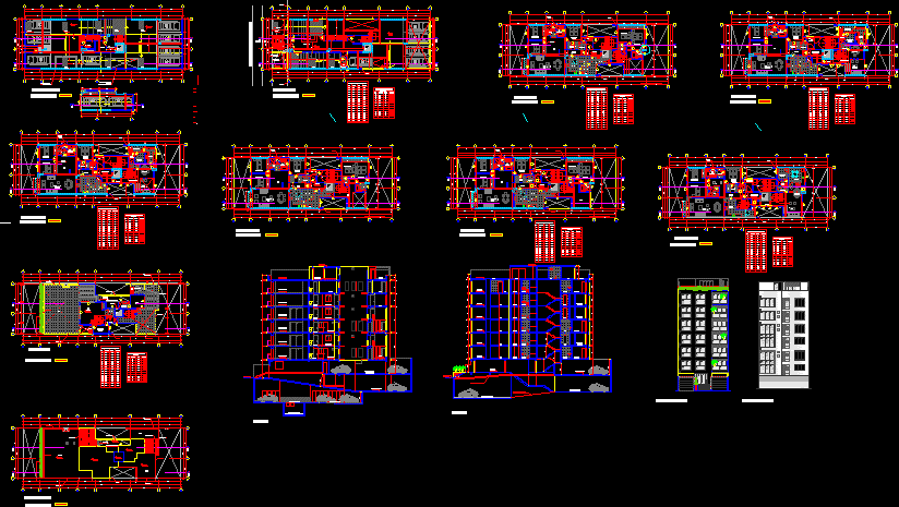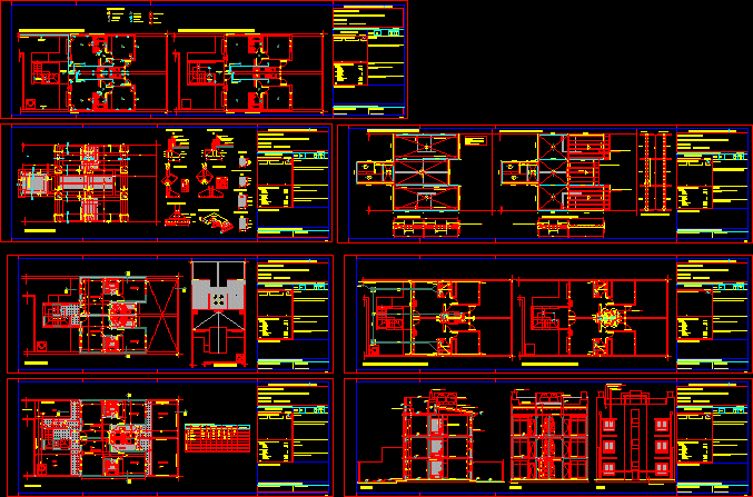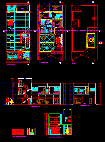 Zemin kat dükkanlarında bina daireler İnşaat detayları - elektrik ayrıntıları ile proje |