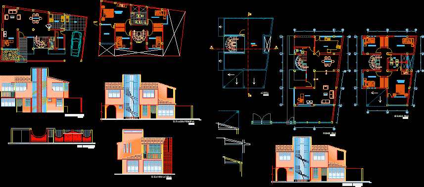 Dubleks ev Çift yönlü karanfiller - bölümleri - Eleations |