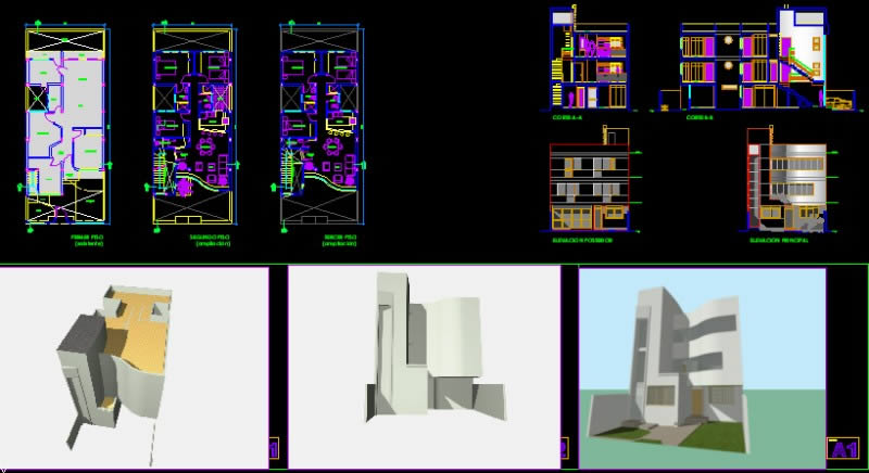 Apartman - proje -Bölümleri - yükselmeler apartman - proje - 6 kat - bitkiler |