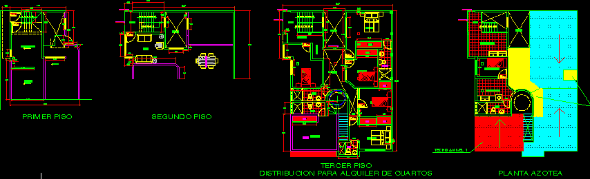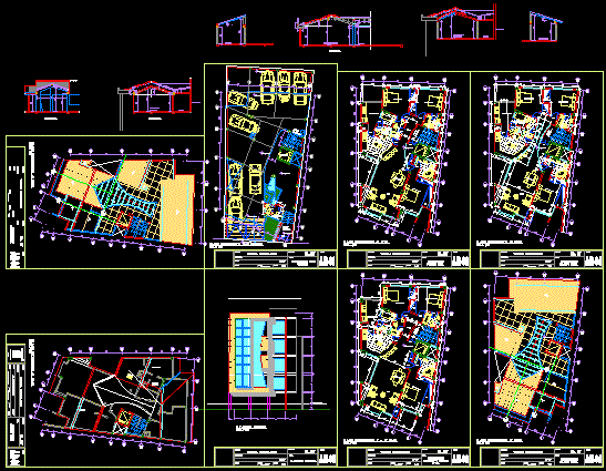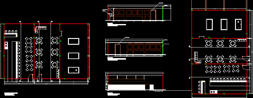 Restoran projesi -Elektrik - su tesisatı Restoran projesi - bitkiler - bölümleri - yükselmeler - detaylar |