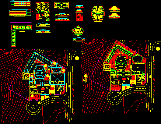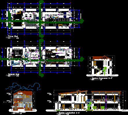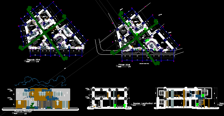 Eğitim Binası -Çizimleri - çalışma bina - bitkiler - bölümler |