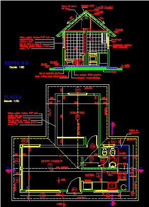 Küçük ev - sığınak Küçük ev - sığınak - bitkiler - bölümler - yükselmeler - detaylar - elektrik |