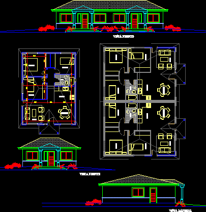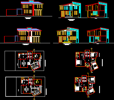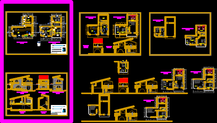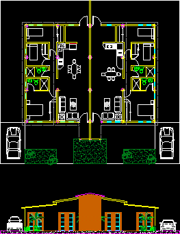 Çift yönlü - proje Dubleks - proje - bitkiler - bölümleri - yükselmeler - - elektrik - su tesisatı detayları |