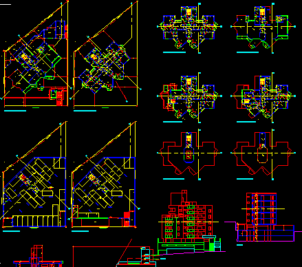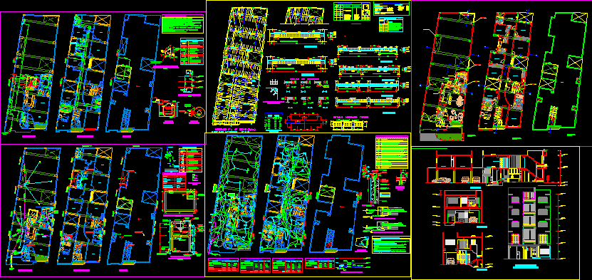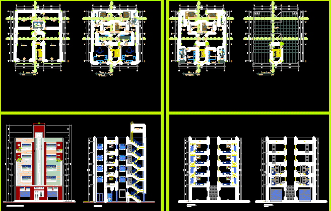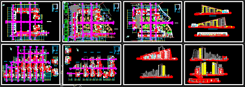 Apartment building -Çizimleri - apartman - bitkiler - bölümler |