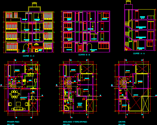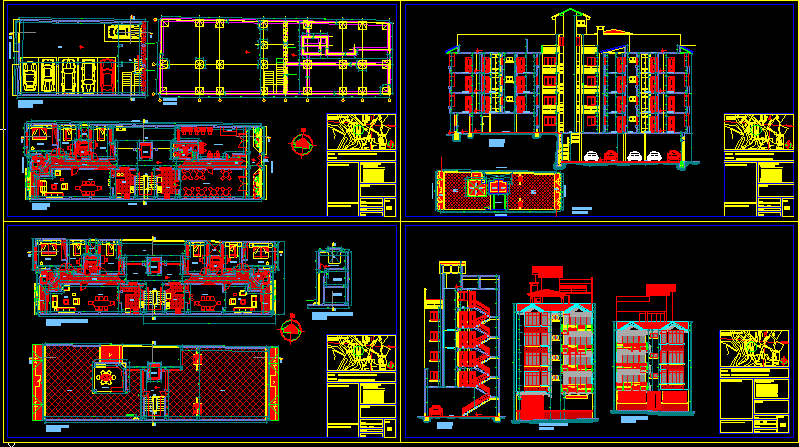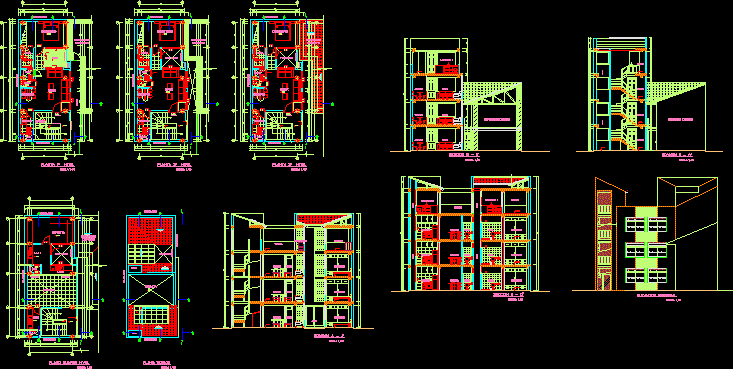 Apartment building -Çizimleri - Ayrıntılar apartman - bitkiler - bölümler |