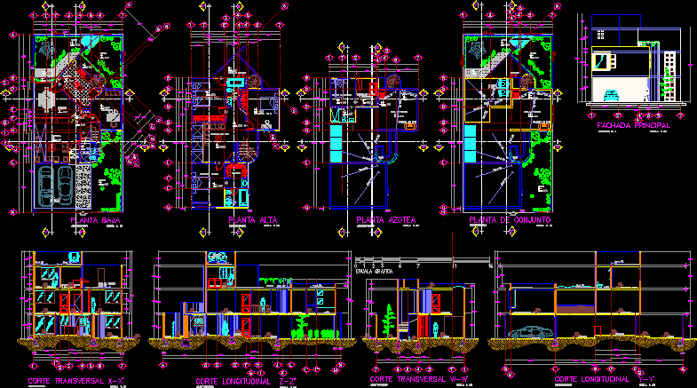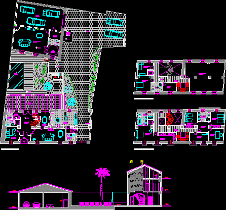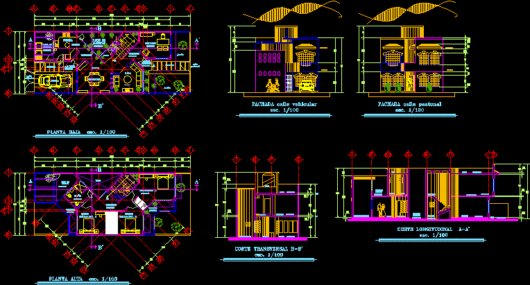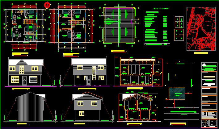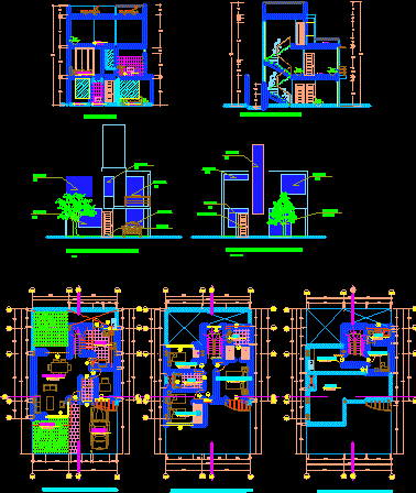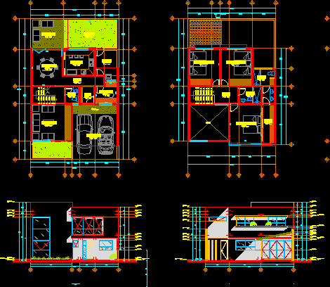 House - çift yönlü -Çizimleri - dubleks - bitkiler - bölümler |
