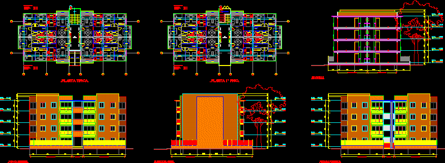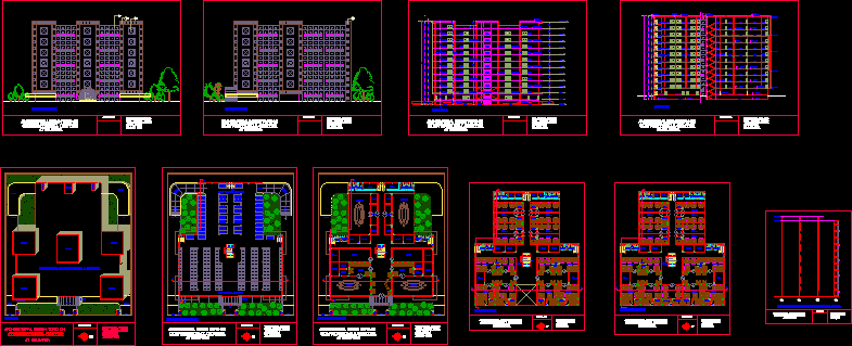 Apartment building -Çizimleri - Ayrıntılar Los Cambulos apartman - bitkiler - bölümler |