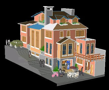 Apartment building Apartman - dört katlı - bitkiler - bölümler-yükseklikler |