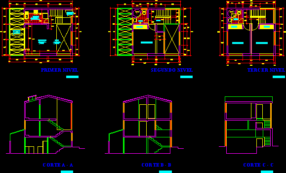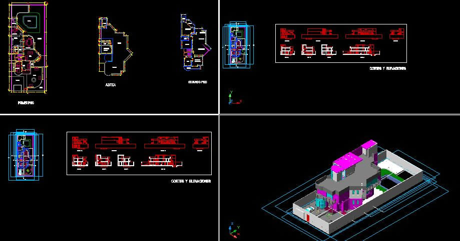 Apartment building -Bölümler - yükselmeler - elektrik - Temeller apartman - proje - üç kat - bitkiler |