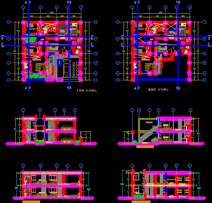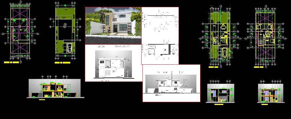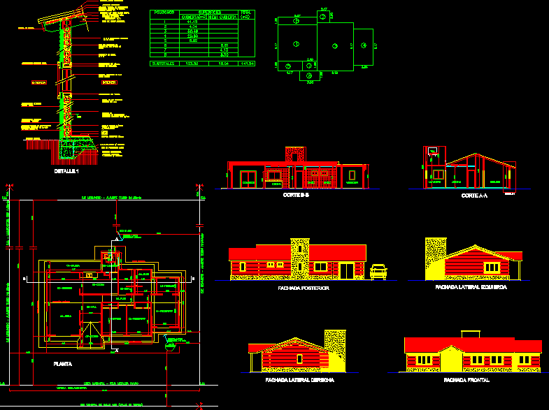 Evi projesi Ev projesi - Twoo kat - 3 yatak odası - bitkiler - bölümler - yükselmeler - detaylar - yapı- |