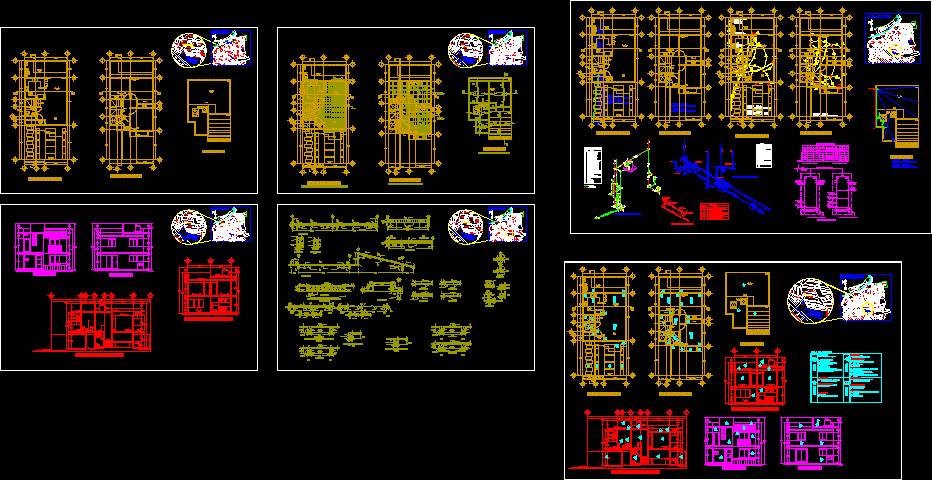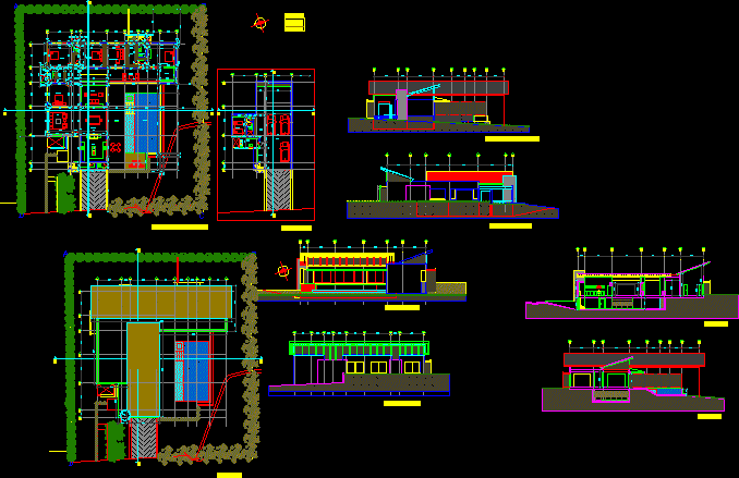 Bina daire -Çizimleri - Ayrıntılar Daire bina - bitkiler - bölümler |