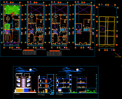 Apartment building -Çizimleri - Ayrıntılar apartman - üç - Twoo Apartments - bitkiler kat - bölümler |