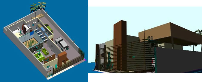 2D-3d evi projesi Kat planları ve 3D modeli |
