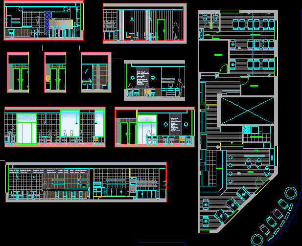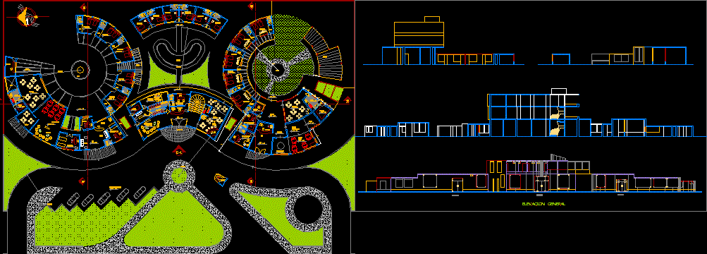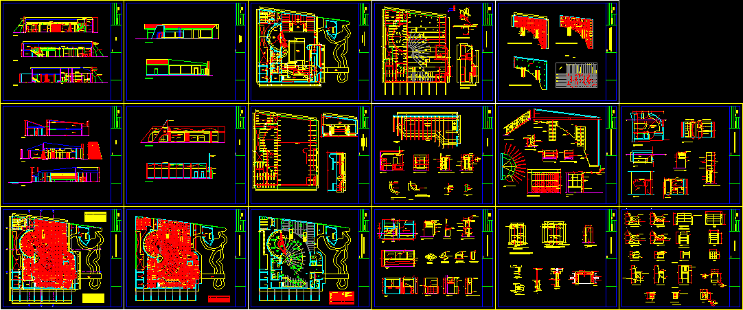 Disko proje Proje kat planları bölümler ve yükseklikler |