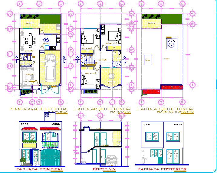 Evin ilk taslak -Bölümleri - cepheler evi ilk taslak - 3 yatak odası - bitkiler |