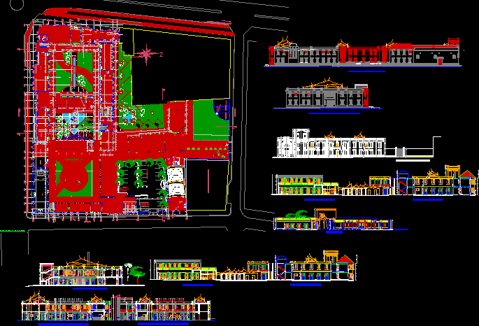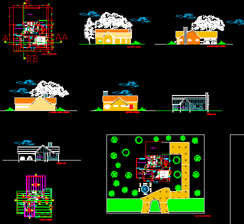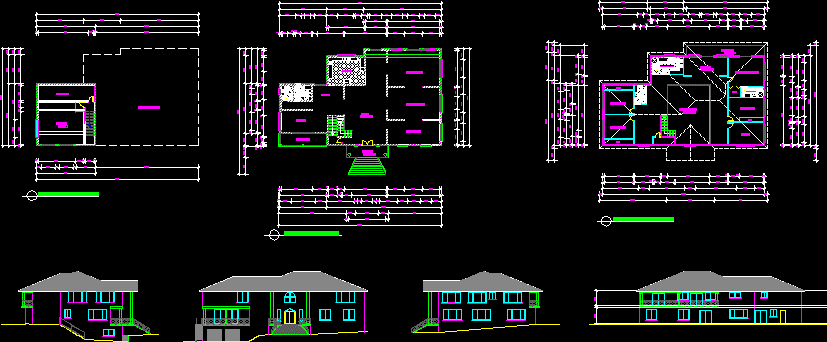 Evi projesi 4 yatak odalı evde ncludes bütün elevationsf kat planları ve vaziyet planı |