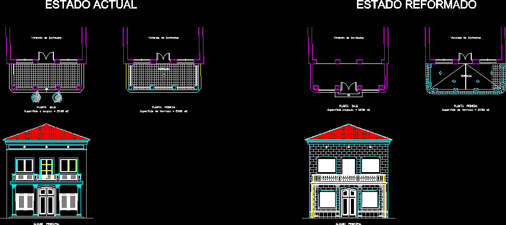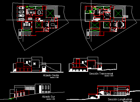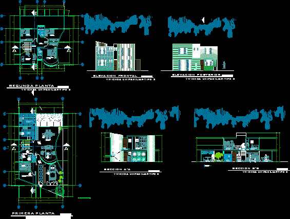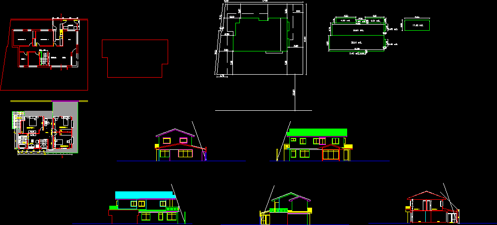 2 katlı evi projesi 2 kat planları - yükselmeler - bölümler |