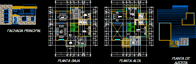 Banliyö evi Zemin ve birinci kat planları - cephe |
