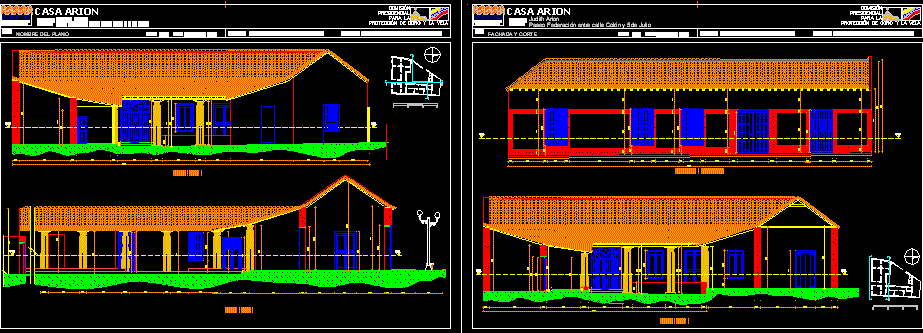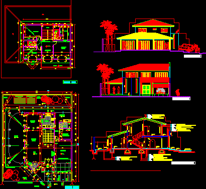 Sosyal evi Sosyal House - bitkiler - bölümleri - cepheler |