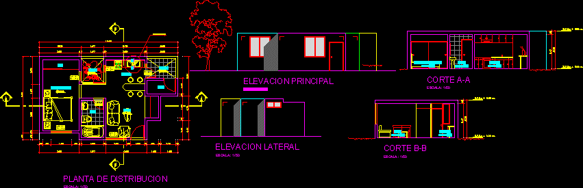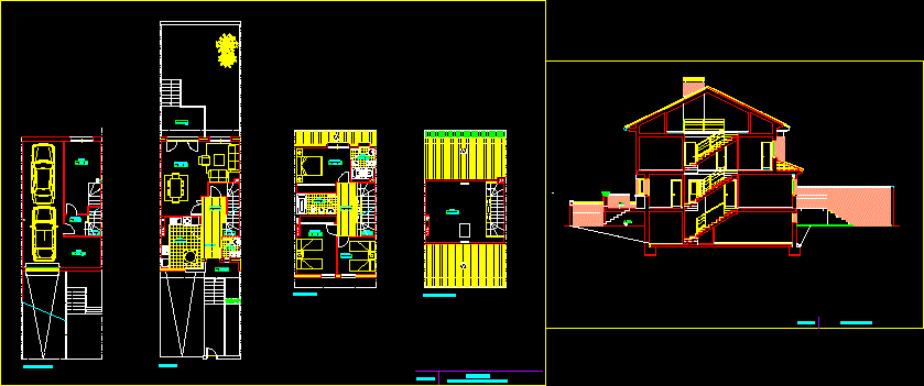 Müstakil ev Olarak de vivenda tr planta bitki - bölümleri - yükselmeler evde Cortes y Elevaciones projesi |