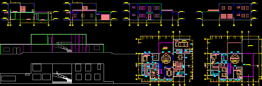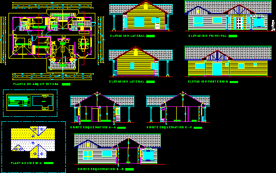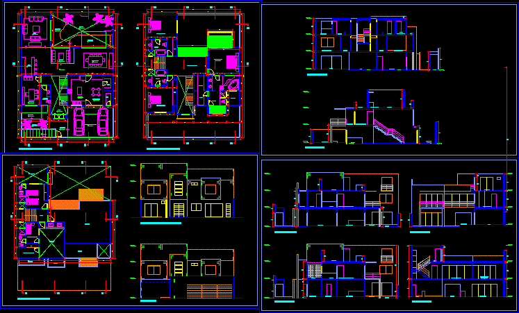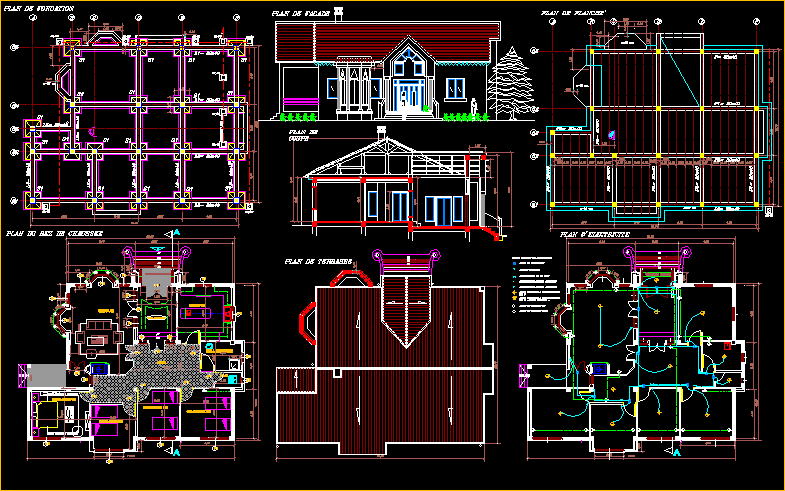 Beş yatak odası ile ev Uçak - kat planları - yükselmeler - bölümleri site |