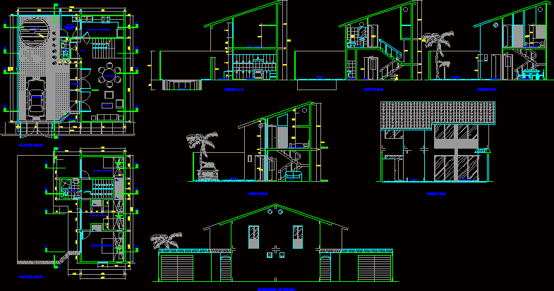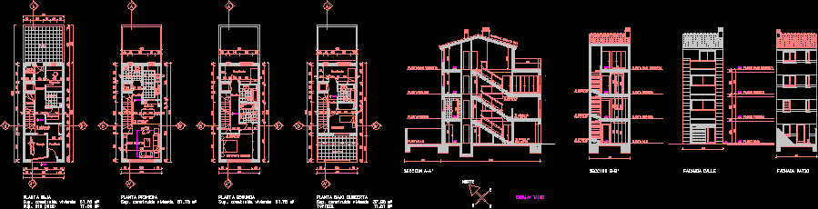 Proje müstakil ev Proje müstakil ev geliştirme karada 4.60 m genişliğinde - 4 düzeyleri - bitkiler - bölüm |