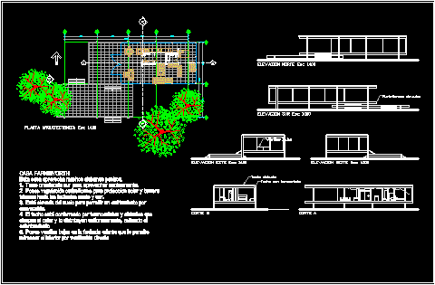 Farnsworth house, Merkezi plano, Il., ABD tarafından mies van der rohe, 1951 Farnsworth House, Merkezi Plano, Illinois, ABD - planları - bölümleri - Gösterim |