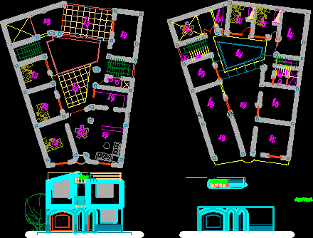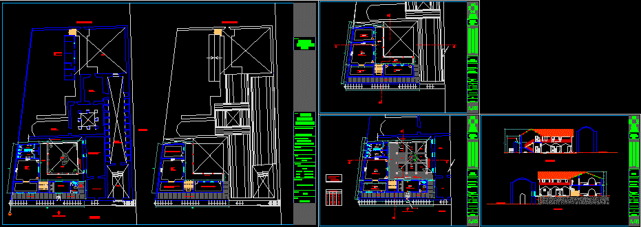 Ofis binaları ve Kütüphane 2d Proje ofisleri projeksiyon Oda - 2 düzeyleri underground 2 office düzeyleri - Architetonic tertibatları - çatılar - bölümleri - yükselmeler kütüphane ile- |