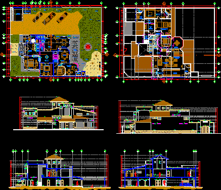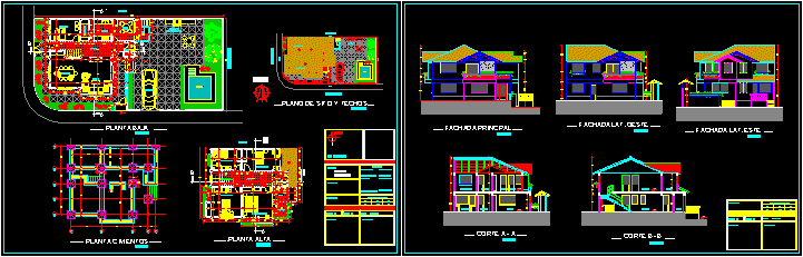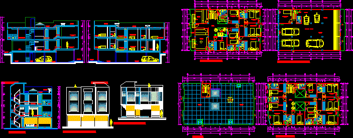 House - tam uçaklar House - 4 yatak odası - kat - cephe - tesisi - bölümler |