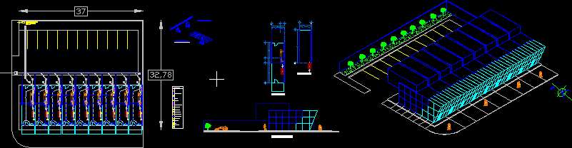 Alışveriş merkezleri Bölüm - San Luis Potosi - bitkiler - cephe - izometrik - İmkanları depolar |