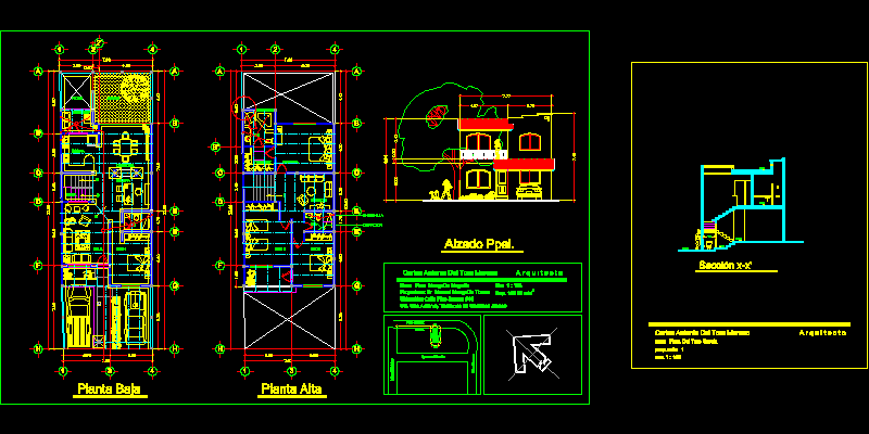 Konut Konut tasarımını Cuernavaca City - 300 m2 inşa - 3 yatak odası - bitkiler - yükseklik - bölümler |