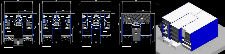 Bina yüksekliği Bina yüksekliği - 4 düzeyleri - 2 appartments bitki - 3 yatak odası - bitki - Model 3D |