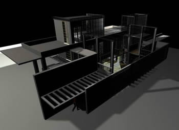 3D konut projesi Cam geçit tarafından bağlı iki bitkiler ile 3D konut ev |