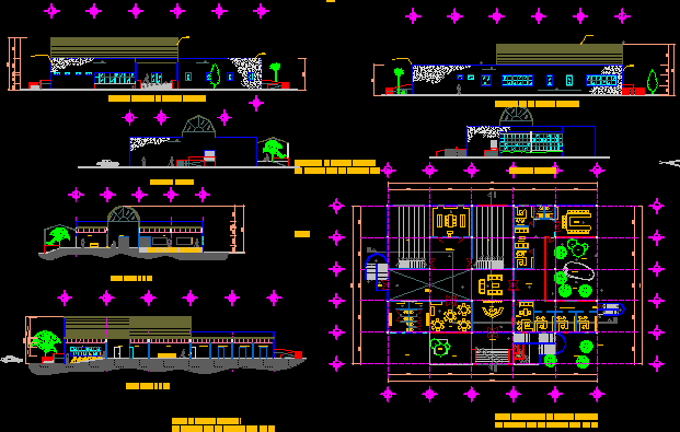 Benzin istasyonu Avnue musluk yan sokak-bitki tam teçhizatları, çatılar ve genel dağıtım - ayrıntıları ile proje |