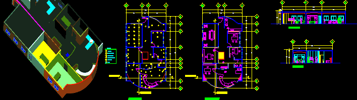Oroya Kültür Merkezi Mimari Civic Center'da Oroya - Peru aksonometrik görünümünü |