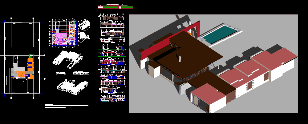 Kır evi Kır evi - Yüzme Havuzu - 3D bitkiler bölümler - Perspektifler - Model |
