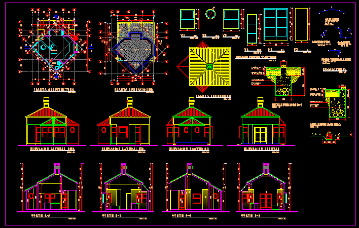 Office tuorisr bilgiler Autocad - tam proje - bitkiler - bölümleri - detaylar - çatılar bitki düzlemde |