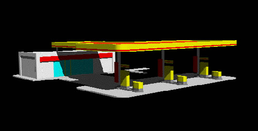 Servis istasyonu - shell benzin; Nikaragua Otomatik hizmet mağazası - 3D modeli ile benzin istasyonu |
