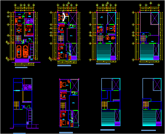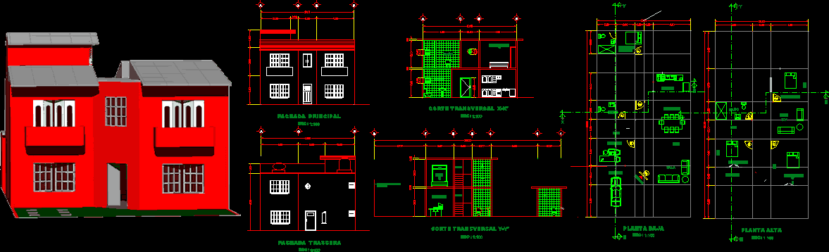 House 2 düzey 3D House 2 mobilyaları, bitkiler, bölümleri - 3Bedrooms - Studio - madel 3D düzeyleri |