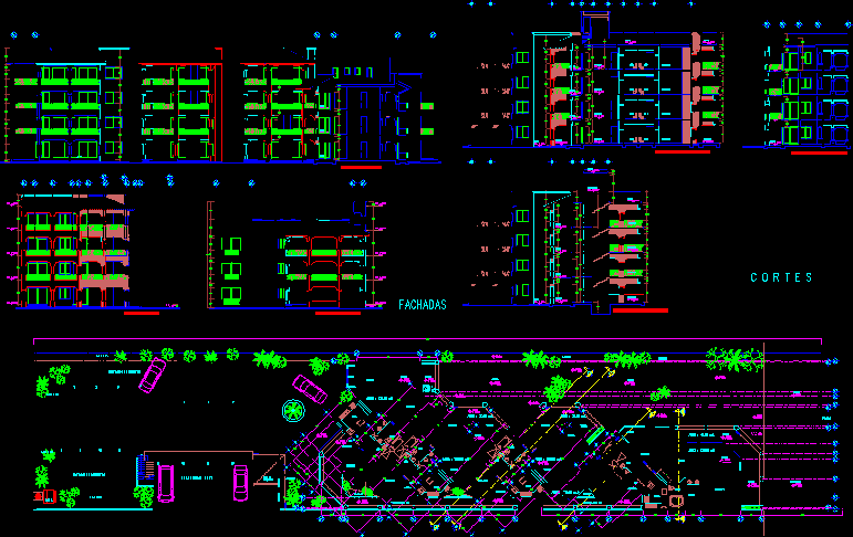 Ofis Binası, 6 kat sayısı Ofis - Architectonical projede 6 2 Asansör - katı duvarlar - bölümleri - cepheler düzeyleri. |